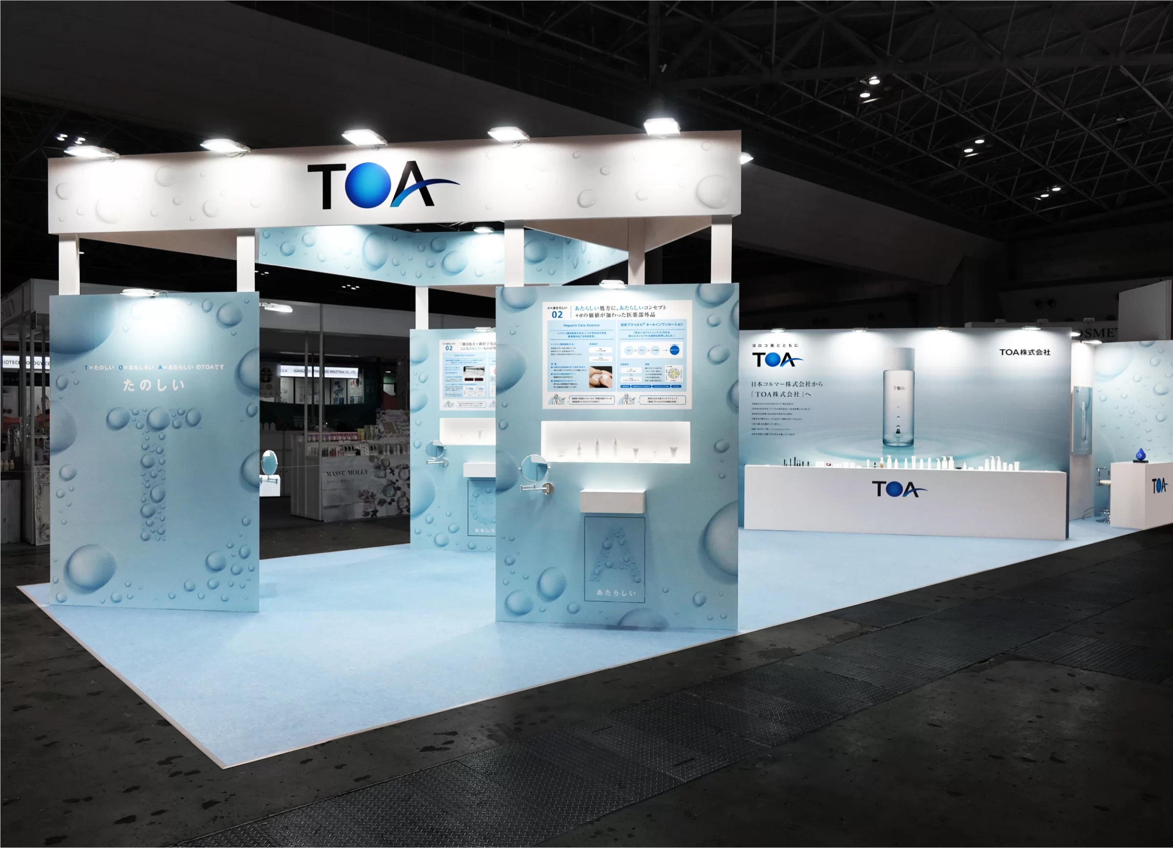 化粧品のODM/OEMのTOA株式会社(旧:日本コルマー)さまの「第15回 化粧品開発展」の展示ブースなどのお手伝いをさせていただきました。2024年6月の社名変更後、初の展示会出展ということで、会社のスローガン「T=たのしい O=おもしろい A=あたらしい」をテーマに研究開発された商品群を出展。展示ブースも、テーマに合わせて、企業コンセプトとイメージを全面に押し出したデザインで展開いたしました。